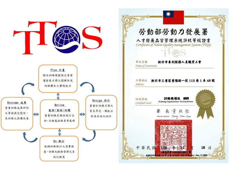 勞動部勞動力發展署TTQS銅牌認證肯定的專業培訓機構